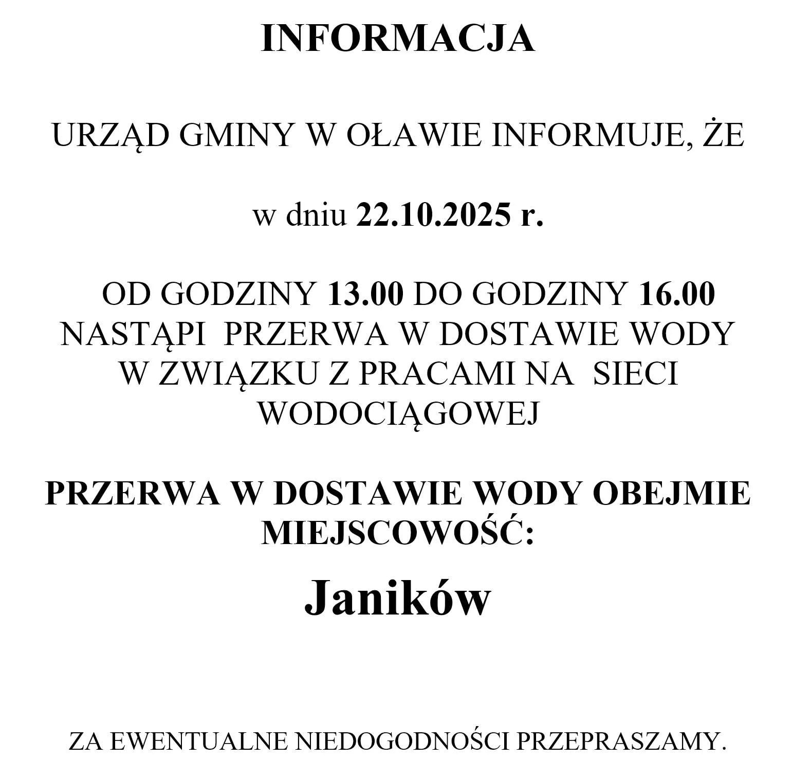 Pamiętaj o wcześniejszym zaopatrzeniu się w niezbędną ilość wody na czas przerwy.