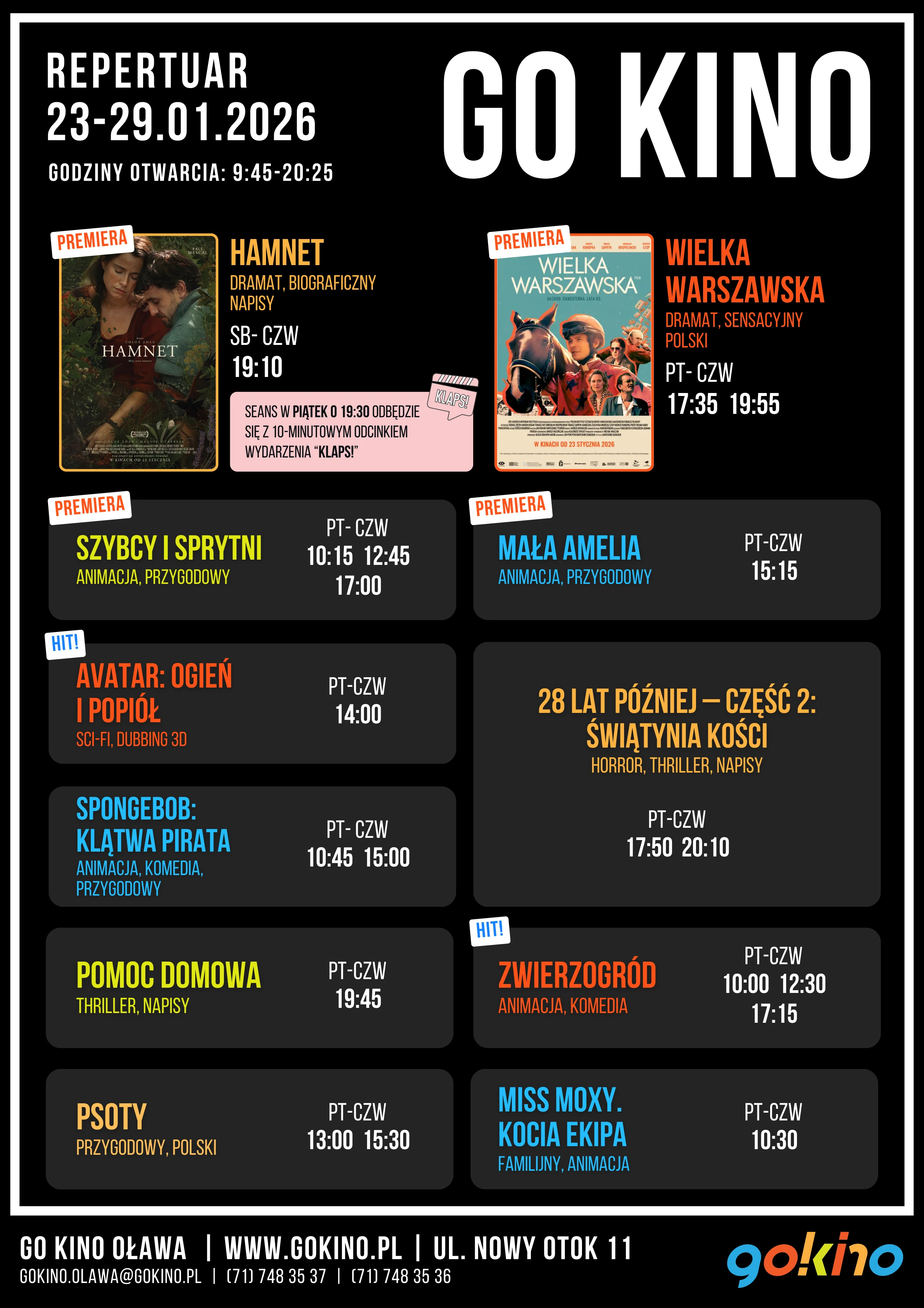 W najnowszym repertuarze Go Kino - premierowo dramat biograficzny: "Hamnet", dramat sensacyjny "Wielka Warszawska", animacje "Szybcy i Sprytni" i "Mała Amelia".