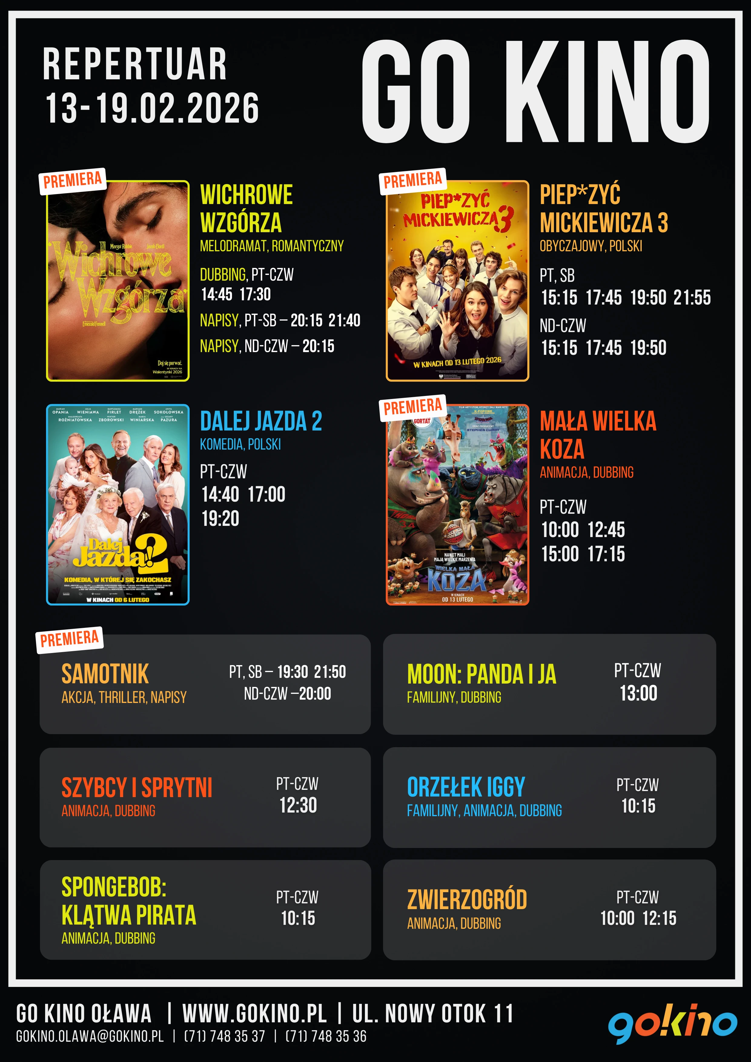 Premierowo na ekranie: romans "Wichrowe Wzgórza", film obyczajowy "Piep*zyć Mickiewicza 3", animacja "Wielka mała koza", oraz film przygodowy "Samotnik".