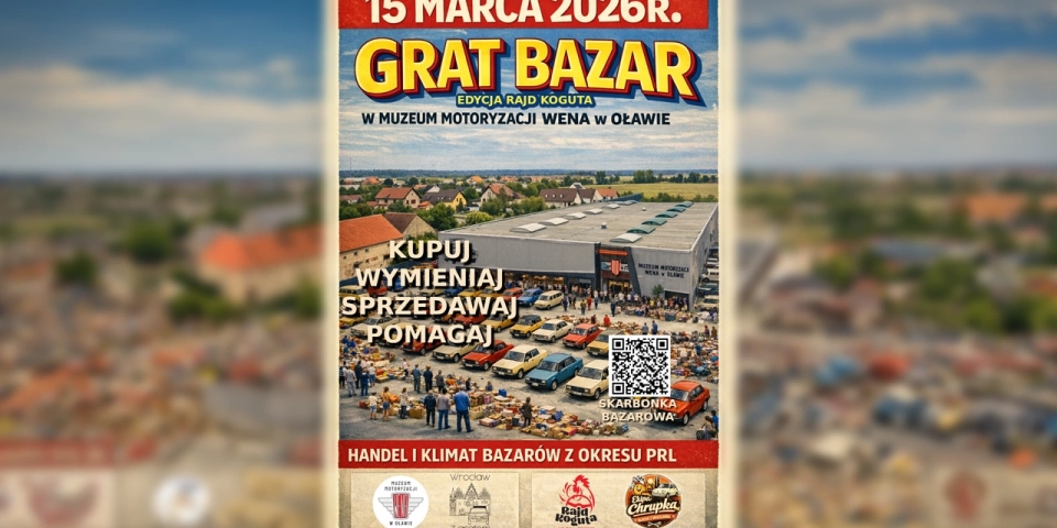 Szukasz części przed Rajdem Koguta? A może chcesz przewietrzyć garaż i przy okazji zrobić coś dobrego? Już 15 marca 2026 roku na parkingu Muzeum Motoryzacji WENA w Oławie odbędzie się "GRAT BAZAR"