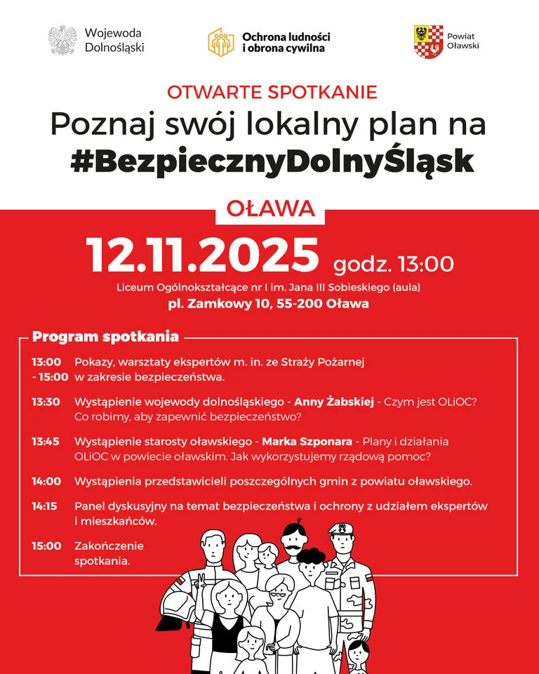 W środę, 12 listopada o godzinie 13:00, w auli Liceum Ogólnokształcącego nr I im. Jana III Sobieskiego w Oławie odbędzie się otwarte spotkanie poświęcone ochronie ludności i obronie cywilnej, organizowane w ramach inicjatywy „Bezpieczny Dolny Śląsk”.