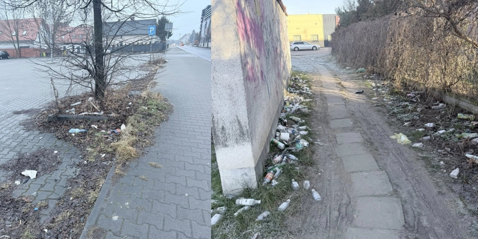 Zgłoszone miejsca to: teren przy ścieżce pieszo-rowerowej na wysokości parkingu przy ulicy Lipowej, teren przy stacji Shell – butelki po małpkach skutecznie psują widok. Garaże przy ulicy Żeromskiego, odpadów wciąż nie uprzątnięto od listopada, co wpływa na estetykę okolicy.