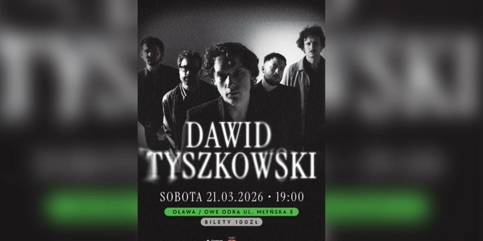 21 marca o godzinie 19:00 w OWE Odra odbędzie się koncert Dawida Tyszkowskiego (filia nr 1 Centrum Sztuki w Oławie, ul. Młyńska 3).