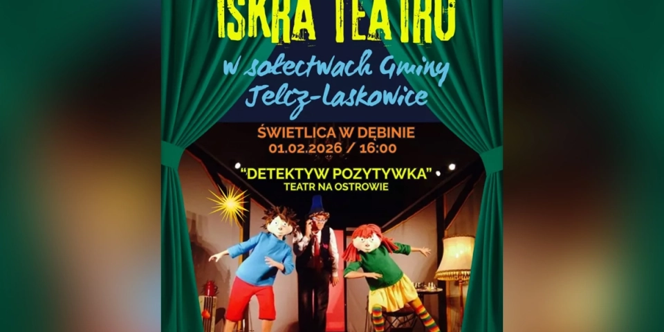 1 lutego iskra teatru zawita do Debiny. -Tym razem wrocławski Teatr Na Ostrowie rozżarzy serca dzieci, a konkretnie tajemniczy detektyw i jego spółka. Tytułowy bohater spektaklu to sympatyczny detektyw, właściciel Agencji Detektywistycznej „Różowe Okulary”. Detektyw Pozytywka zagadki kryminalne rozwiązuje w mig. Jego jedynym orężem w walce ze złoczyńcami jest kaktus w doniczce i intelekt. Rozwiąże zatem zagadki, jakie wyrosły z książki o przygodach detektywa i opowie historię braci Wojtka oraz Marcina - informuje MGCK w Jelczu-Laskowicach.