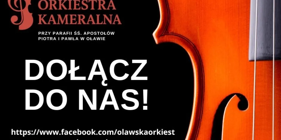Poszukiwani są instrumentaliści smyczkowi i dęci, którzy chcieliby współtworzyć projekty muzyczne w kameralnej atmosferze. Próby odbywają się w każdy piątek o godzinie 19:30 w Centrum Formacji przy parafii św. Piotra i Pawła w Oławie.