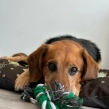 Dolar to około 25‑kilogramowy psiak, który najprawdopodobniej całe życie spędził na łańcuchu. Mimo trudnej przeszłości jest przyjazny, cichy i niezwykle przywiązany do człowieka. Daj mu schronienie!