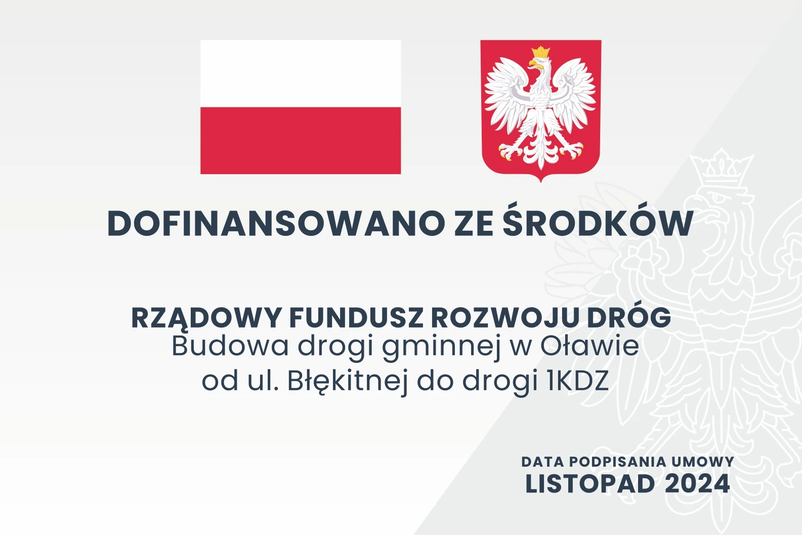 15 października 2025 roku zakończono realizację inwestycji pn. „Budowa drogi gminnej w Oławie od ul. Błękitnej do drogi 1KDZ”. To kolejna ważna inwestycja drogowa, która przyczyni się do rozwoju infrastruktury komunikacyjnej miasta.