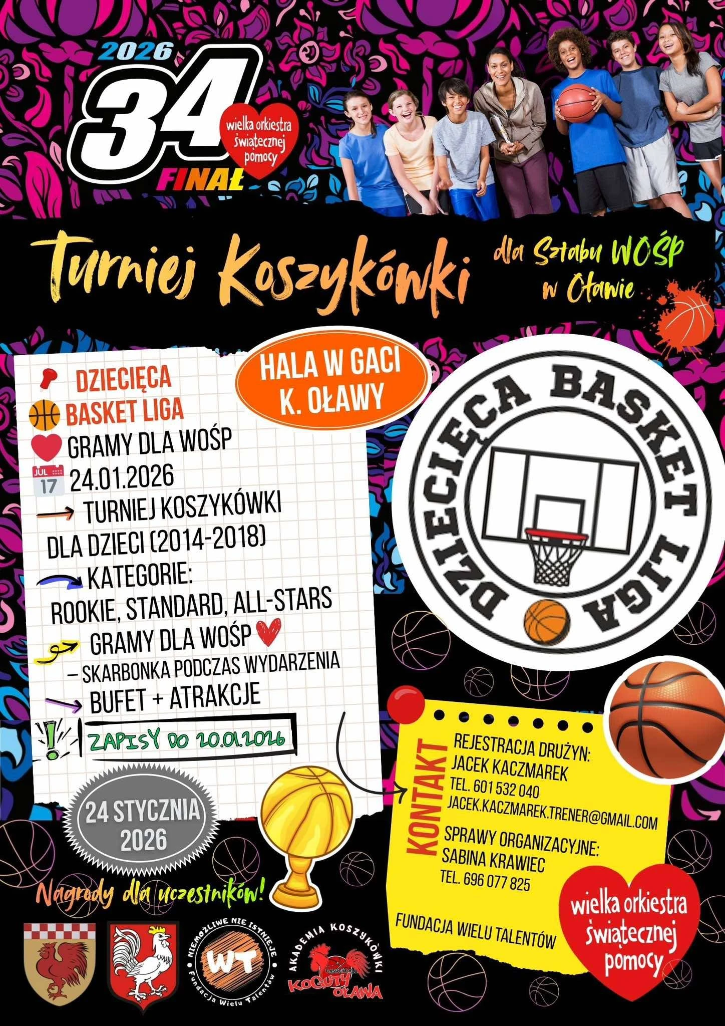 24 stycznia w hali w Gaci odbędzie się Dziecięca Basket Liga -Turniej Koszykówki dla WOŚP, organizowany w ramach 34. Finału Wielkiej Orkiestry Świątecznej Pomocy. To wyjątkowe wydarzenie połączy sportową rywalizację z ideą pomagania. Turniej skierowany jest do dzieci urodzonych w latach 2014-2018. Podczas całego wydarzenia prowadzona będzie zbiórka do puszek WOŚP. Turniej to nie tylko mecze, na uczestników i kibiców czekać będą: bufet z przekąskami i napojami, dodatkowe atrakcje, nagrody dla uczestników