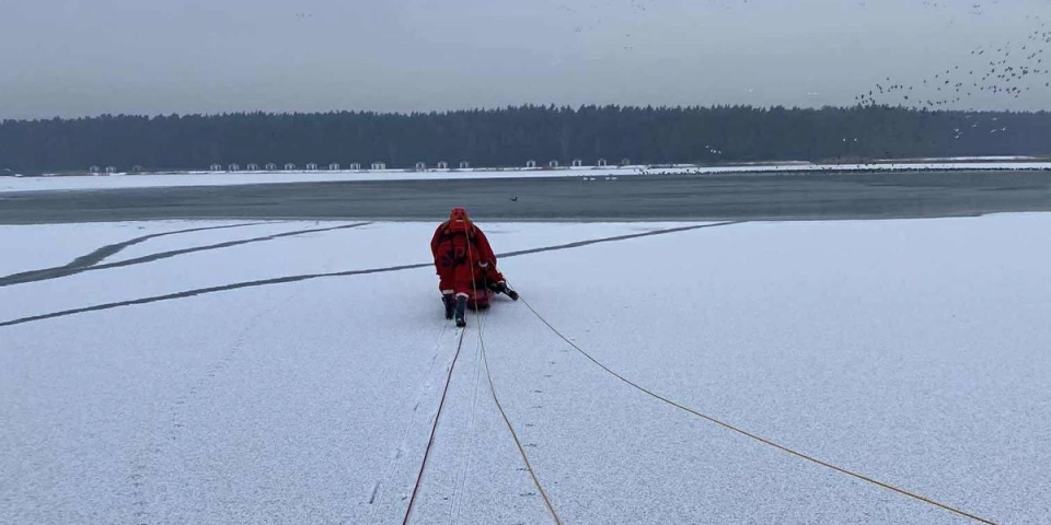 Zgłoszenie dotyczyło gęsi, która została uwięziona na zamarzającym zbiorniku wodnym. Zwierzę znalazło się w pułapce, wokół tworzyła się coraz grubsza warstwa lodu, uniemożliwiająca mu bezpieczne wydostanie się na brzeg.