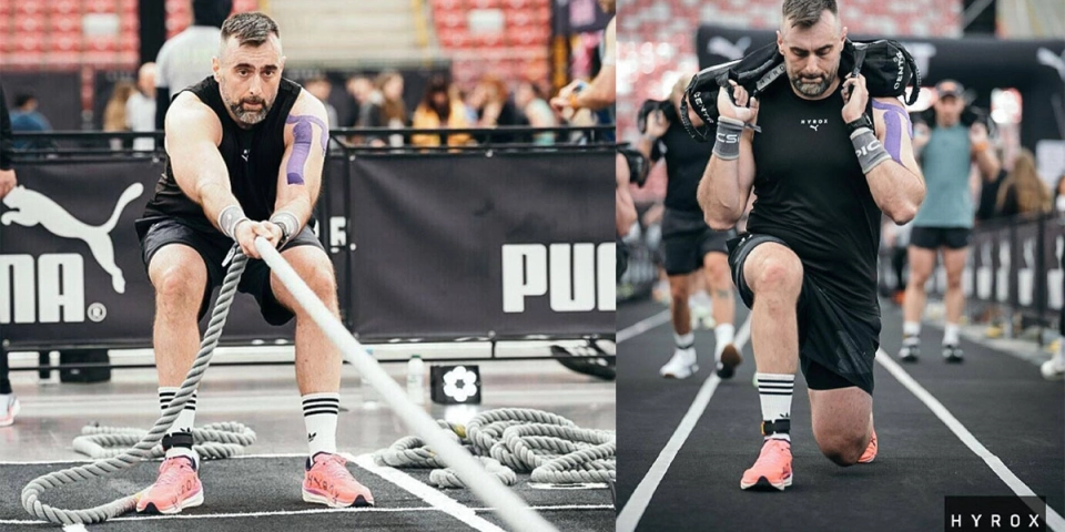 HYROX to zawody łączące osiem kilometrów biegu, po kilometrze przed każdą stacją, z ośmioma funkcjonalnymi ćwiczeniami siłowo-wytrzymałościowymi: SkiErg, pchanie sanek, ciągnięcie sanek, burpees połączony ze skokiem w dal, wioślarz, spacer farmera, wykroki z workiem i piłka lekarska.