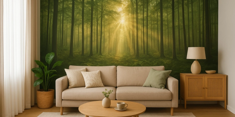 Zmienili nudne beżowe ściany na gigantyczną tapetę z lasem oświetlonym porannym słońcem.