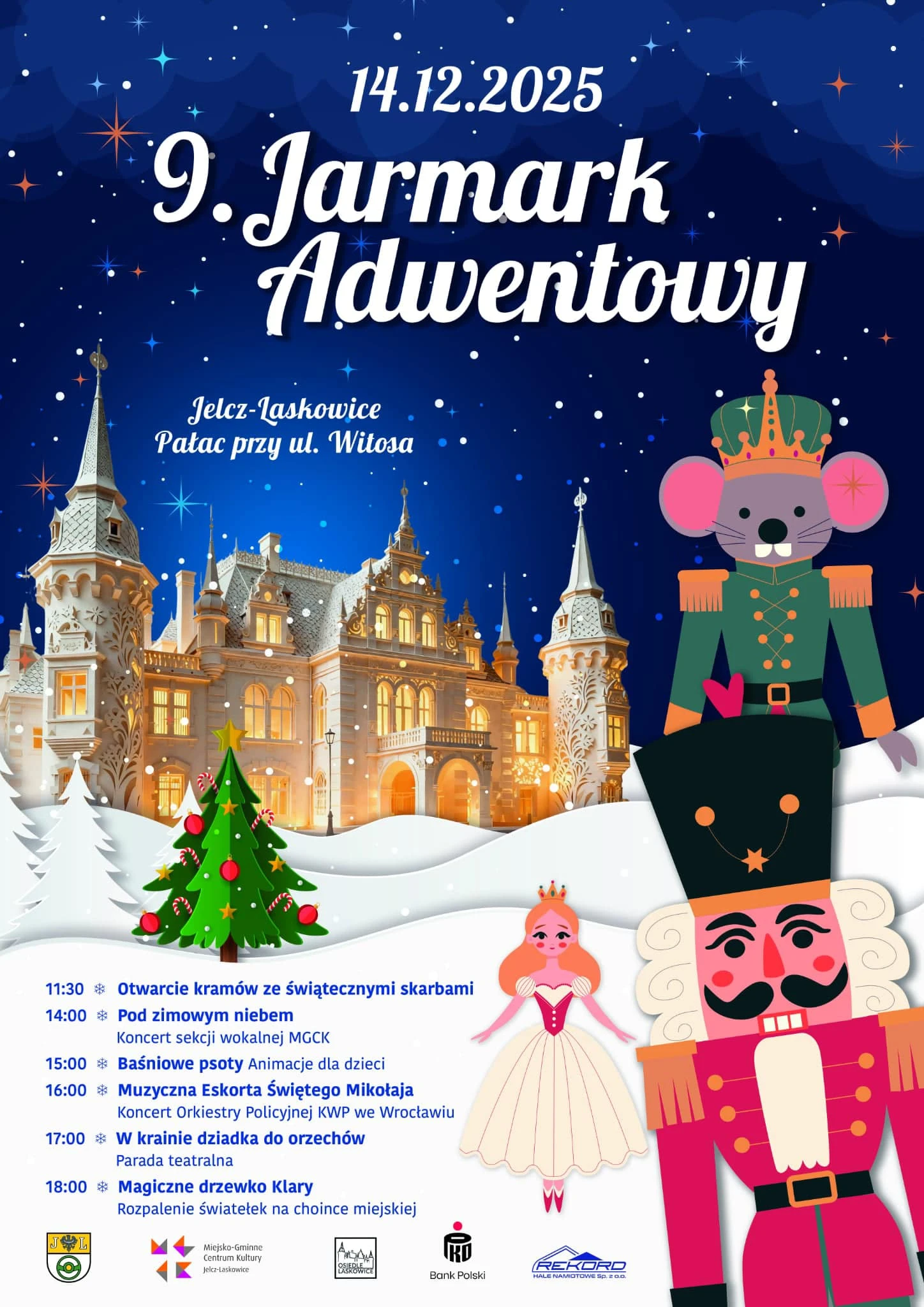 14 grudnia w Jelczu-Laskowicach odbędzie się dziewiąta edycja Jarmarku Adwentowego w Jelczu-Laskowicach. - Doceniany za swój unikatowy charakter na całym Dolnym Śląsku! W zachwycającej scenerii pałacu, w towarzystwie występów muzyczno-artystycznych, teatrów, barwnych straganów…zadzieje się magia - informuje MGCK.
