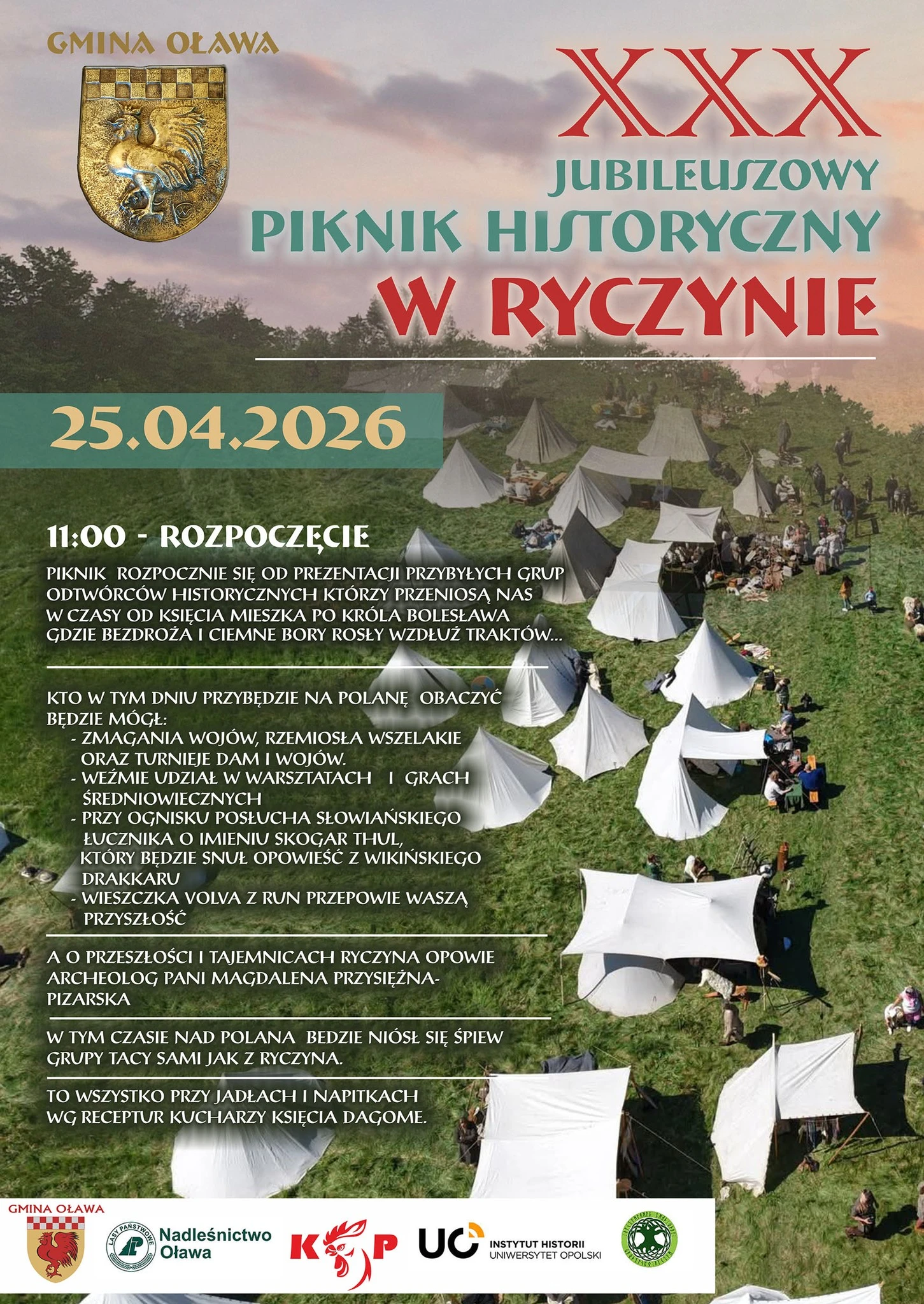Już w najbliższa sobotę, 25 kwietnia odbędzie się jubileuszowy XXX Piknik Historyczny, który rozpocznie się o godzinie 11:00. Dla osób, które nie znają jeszcze leśnych dróg prowadzących do ryczyńskiej osady, przygotowano kilka wskazówek dojazdu.