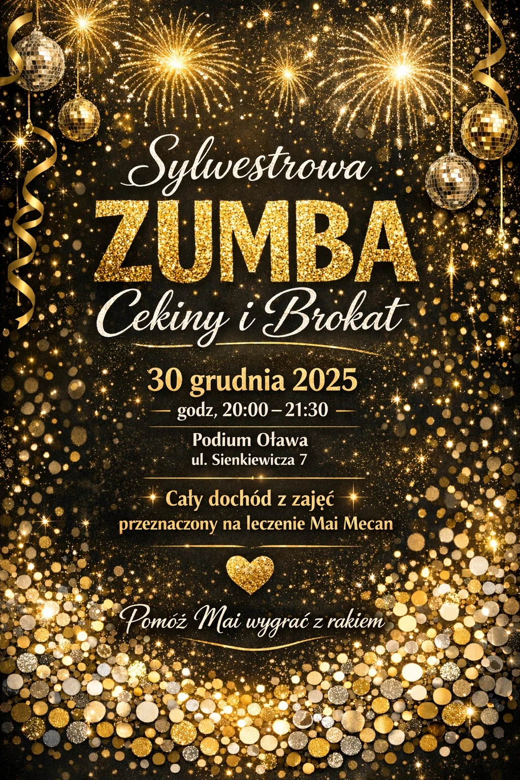 30 grudnia w Podium odbędzie się wyjątkowe wydarzenie pełne energii, ruchu i serca. Organizatorzy zapraszają na Sylwestrową Zumbę, której celem jest wsparcie leczenia Mai Mecan. Cały dochód z zajęć zostanie przeznaczony właśnie na ten cel.