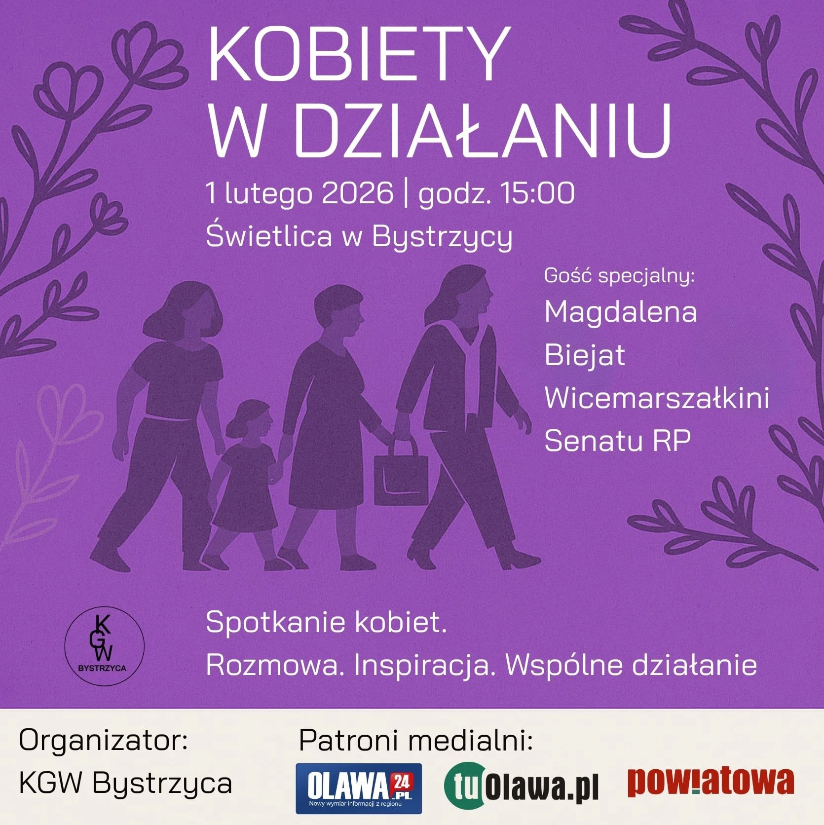 Koło Gospodyń Wiejskich w Bystrzycy zaprasza na II edycję wydarzenia "Kobiety w działaniu", które integruje i wzmacnia kobiety z terenów wiejskich i Oławy.