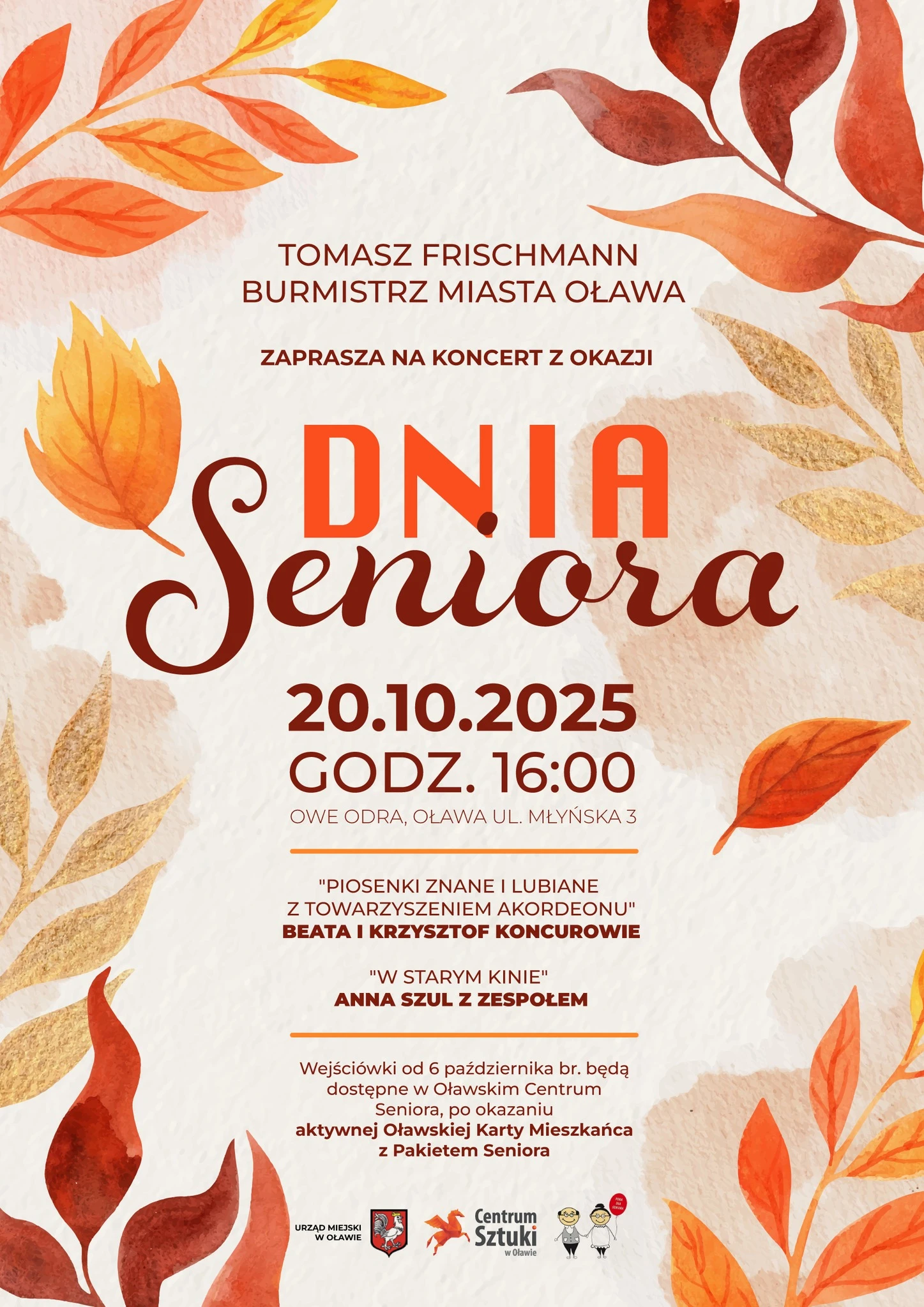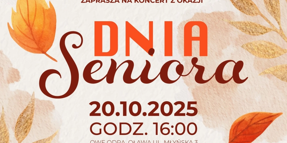 20 października o godzinie 16:00 w OWE Odra przy ul. Młyńskiej 3 w Oławie odbędzie się wyjątkowy koncert z okazji Dnia Seniora.