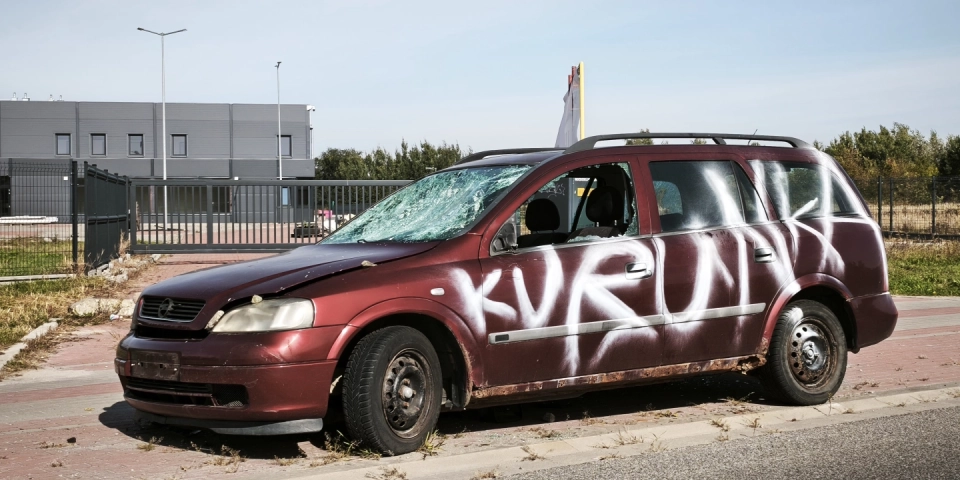 Samochód stał się celem zabaw i aktów wandalizmu co może stanowić niebezpieczeństwo.