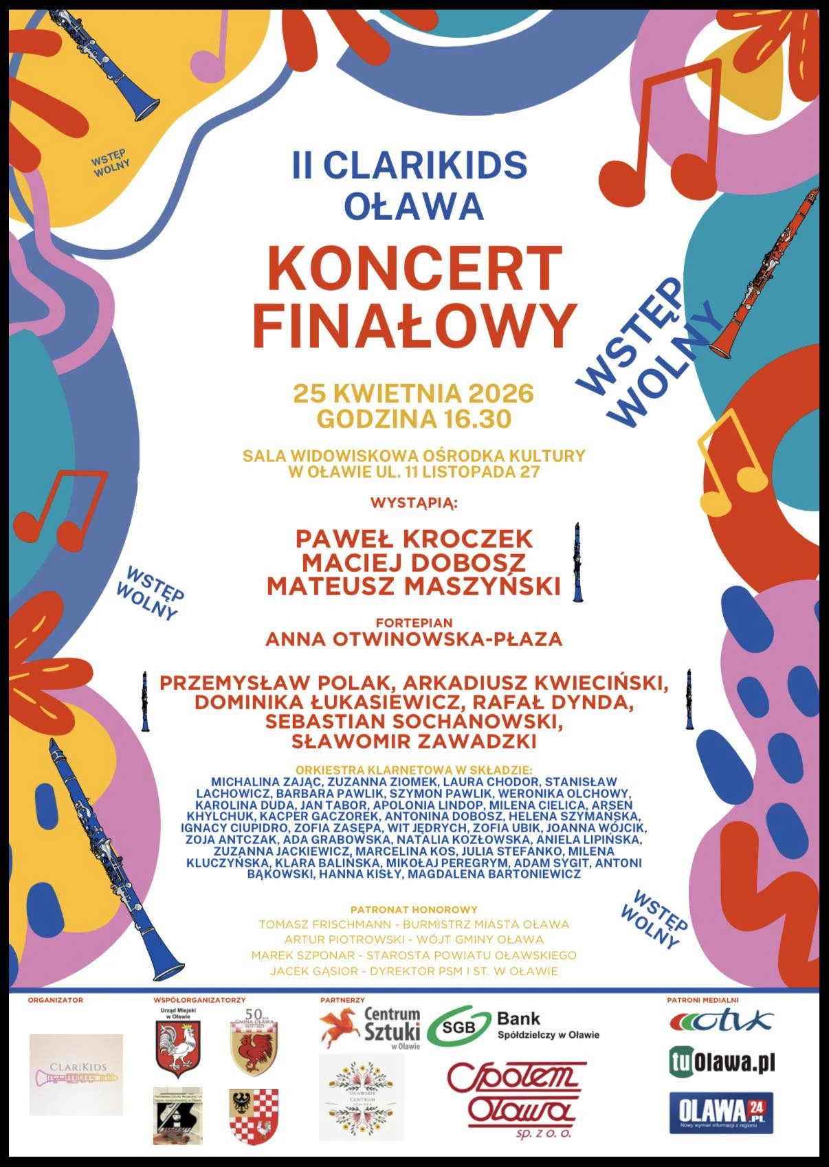 Już 25 kwietnia Oława stanie się miejscem wyjątkowego wydarzenia muzycznego. W sali widowiskowej Ośrodka Kultury odbędzie się II edycja Clarikids Oława - Koncert Finałowy, który zgromadzi młodych, utalentowanych muzyków oraz doświadczonych artystów sceny klasycznej.