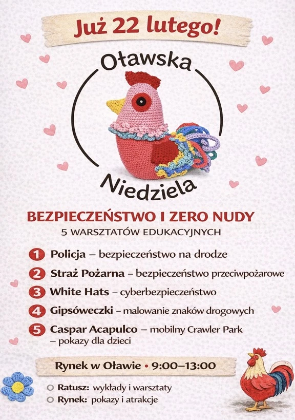 Już w najbliższą niedzielę, 22 lutego, w godzinach od godziny 9:00 do 13:00 w na Rynku w Oławie odbędzie się kolejna edycja Oławskiej Niedzieli. Tym razem wydarzenie poświęcone będzie tematyce bezpieczeństwa, a organizatorzy przygotowali atrakcje zarówno dla dzieci, młodzieży, jak i dorosłych.