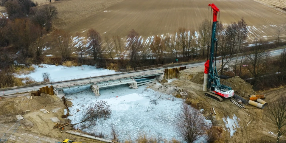 Na placu budowy pracuje ciężki sprzęt. Jeden z mostów został już częściowo wyburzony, drugi czeka na rozpoczęcie podobnych prac. Roboty prowadzone są etapami - tak, aby przez cały czas zachować przejezdność jednej połowy obiektu. Dzięki temu, mimo utrudnień, ruch na trasie nie został całkowicie wstrzymany. Gdy mosty w Starym Górniku będą gotowe, drogowcy przeniosą się na te bliżej Janikowa.