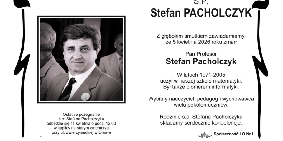 Zmarł Stefan Pacholczyk, długoletni nauczyciel matematyki i pionier informatyki w Liceum Ogólnokształcącym im. Jana III Sobieskiego.