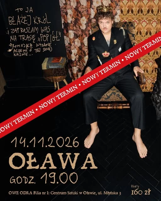 Koncert Michała Króla, który miał odbyć się 30 kwietnia, został przełożony na 14 listopada. Wszystkie zakupione bilety zachowują ważność. Osoby, które chcą zwrócić bilety kupione online, powinny skontaktować się z platformą Bilety24. W przypadku biletów zakupionych w kasie należy zgłosić się do Centrum Sztuki w Oławie - telefon: 71 735 15 70, e-mail: bilety@kultura.olawa.