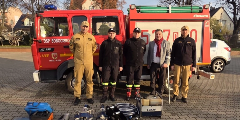 17 grudnia w Komendzie Powiatowej Państwowej Straży Pożarnej w Oławie odbyła się uroczystość przekazania nowego zestawu hydraulicznego „Lukas” dla Ochotniczej Straży Pożarnej w Sobocisku. W wydarzeniu uczestniczyli: Artur Piotrowski- Wójt Gminy Oława, komendant powiatowy PSP w Oławie mł. bryg. Bartłomiej Marcinów, komendant gminny OSP Gminy Oława Piotr Książkiewicz oraz prezes jednostki OSP Sobocisko Łukasz Ostropolski wraz z druhem Dawidem Jaskotem, sekretarzem jednostki.