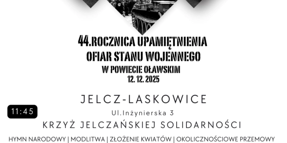 W piątek, 12 grudnia, w Jelczu-Laskowicach i Oławie odbędą się uroczystości upamiętniające 44. rocznicę wprowadzenia stanu wojennego.