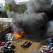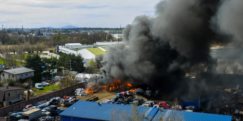 Prawdopodobnie pożar rozpoczął się na obszarze składowania makulatury, następnie rozprzestrzenił się na elementy plastikowe oraz samochody.