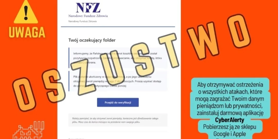 Oszuści podszywając się pod Narodowy Fundusz Zdrowia, rozsyłając fałszywe wiadomości o "zwrocie kosztów zakupu leków". - W treści zachęcają do wypełnienia formularza, co może skutkować przejęciem danych i kradzieżą pieniędzy z konta bankowego! Fałszywe wiadomości wysyłane są z adresu: nfz@focalpointholdings.com. Po kliknięciu w link, ofiara trafia na stronę: mojnfz.leczenie-opieka[.]com. Strona ta imituje prawdziwą witrynę NFZ, jednak służy wyłudzeniu danych osobowych oraz numerów kart płatniczych! - informuje Wioletta Polerowicz, rzecznik prasowy oławskiej policji.