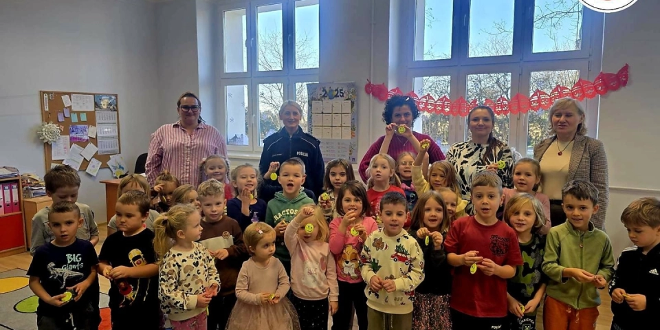 - Nie zabrakło także ważnego tematu - rozmowy o numerze alarmowym 112. Policjantka wyjaśniła dzieciom, kiedy należy z niego korzystać, jak rozmawiać z dyżurnym i jakie informacje trzeba przekazać, gdy chcemy coś zgłosić. Na zakończenie wizyty każdy przedszkolak otrzymał odblask, który pomoże być lepiej widocznym zwłaszcza po zmroku i w trudnych warunkach pogodowych. Dziękujemy za miłe spotkanie i przypominamy: odblaski ratują życie - nośmy je i dbajmy o bezpieczeństwo dzieci!