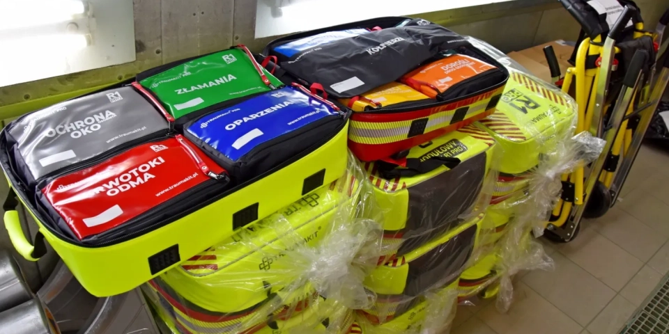 - sprzęt medyczny i ratowniczy, w tym plecaki R1, krzesła ewakuacyjno-transportowe oraz wózki do przewożenia chorych,