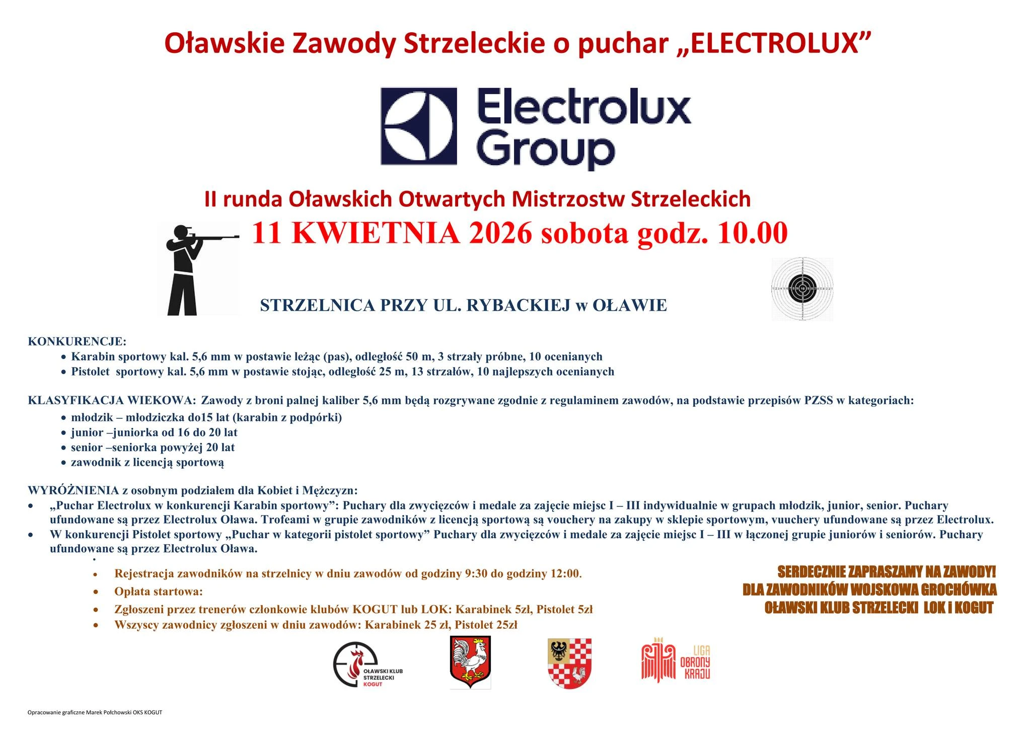 11 kwietnia o godzinie 10:00, na strzelnicy przy ulicy Rybackiej odbędzie się druga runda Oławskich Otwartych Mistrzostw Strzeleckich o puchar "Electrolux".