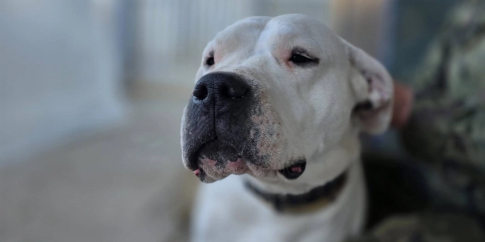 Silna, łagodna suczka w typie Dogo Argentino szuka odpowiedzialnego domu.