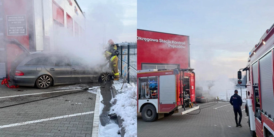 Przy stacji diagnostycznej zapalił się samochód