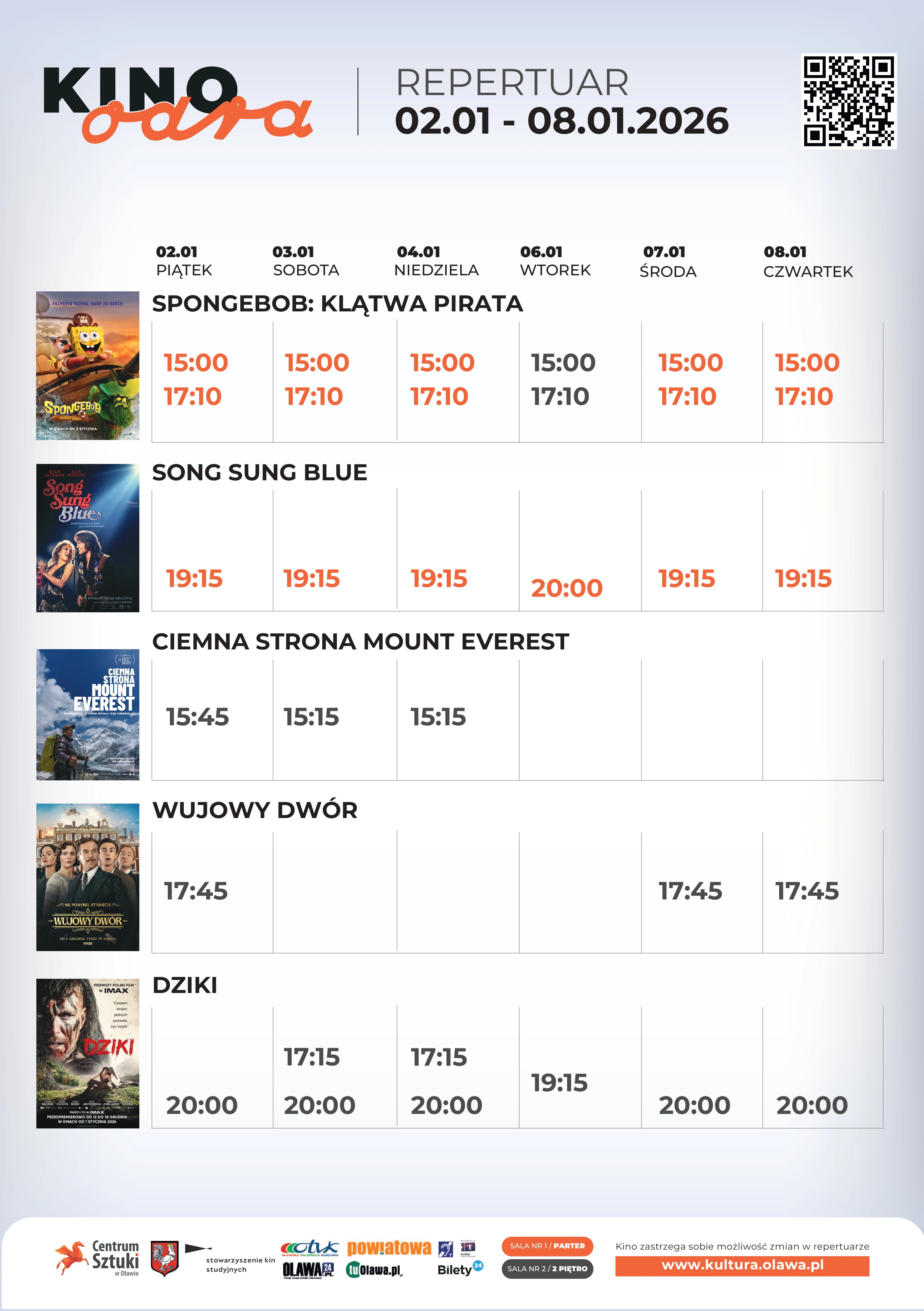 Na ekranie zobaczymy: animację "SpongeBob: Klątwa pirata", dramat biograficzny "Song Sung Blue", film dokumentalny "Ciemna strona Mount Everest", komedia "Wujowy dwór" oraz dramat przygodowy "Dziki".