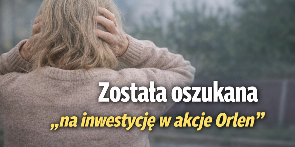 75-letnia mieszkanka powiatu oławskiego padła ofiarą oszustwa "na inwestycję w akcje Orlen". W wyniku manipulacji kobieta straciła ponad 160 tysięcy złotych.
