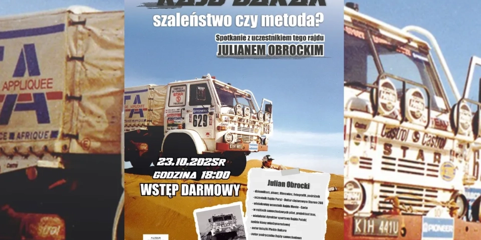 W Muzeum Motoryzacji Wena odbędzie się Spotkanie Podróżnicze z Julianem Obrockim – pierwszym Polakiem, który w 1988 roku ukończył legendarny rajd Paryż–Dakar za kierownicą samochodu Star 266 Rally Turbo. Wydarzenie zaplanowano na środę, 23 października, o godzinie 18:00 w sali konferencyjnej muzeum. Wstęp jest bezpłatny.
