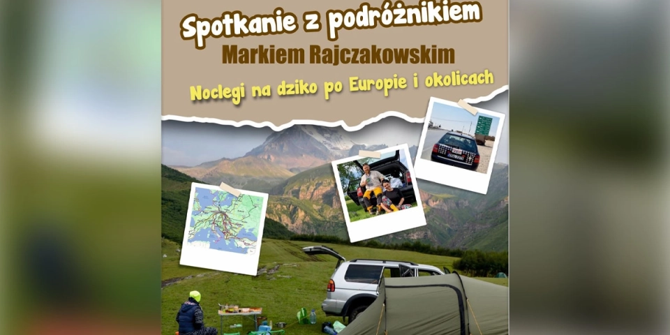 Tematem spotkania będą "Noclegi na dziko po Europie i okolicach". Marek Rajczakowski odwiedził 54 kraje, a niemal wszystkie noce podczas swoich wypraw spędził na dziko - pod namiotem lub w samochodzie. Podczas spotkania opowie o niezwykłych przygodach, którym towarzyszył jedynie szum morza, dźwięk lasu i odgłosy padającego deszczu.