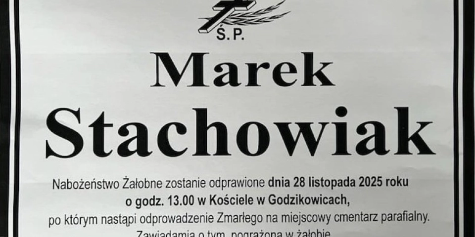 Nabożeństwo żałobne zostanie odprawione dnia 28 listopada 2025 roku o godzinie 13:00 w kościele w Godzikowicach. Po ceremonii nastąpi odprowadzenie Zmarłego na miejsce wiecznego spoczynku.