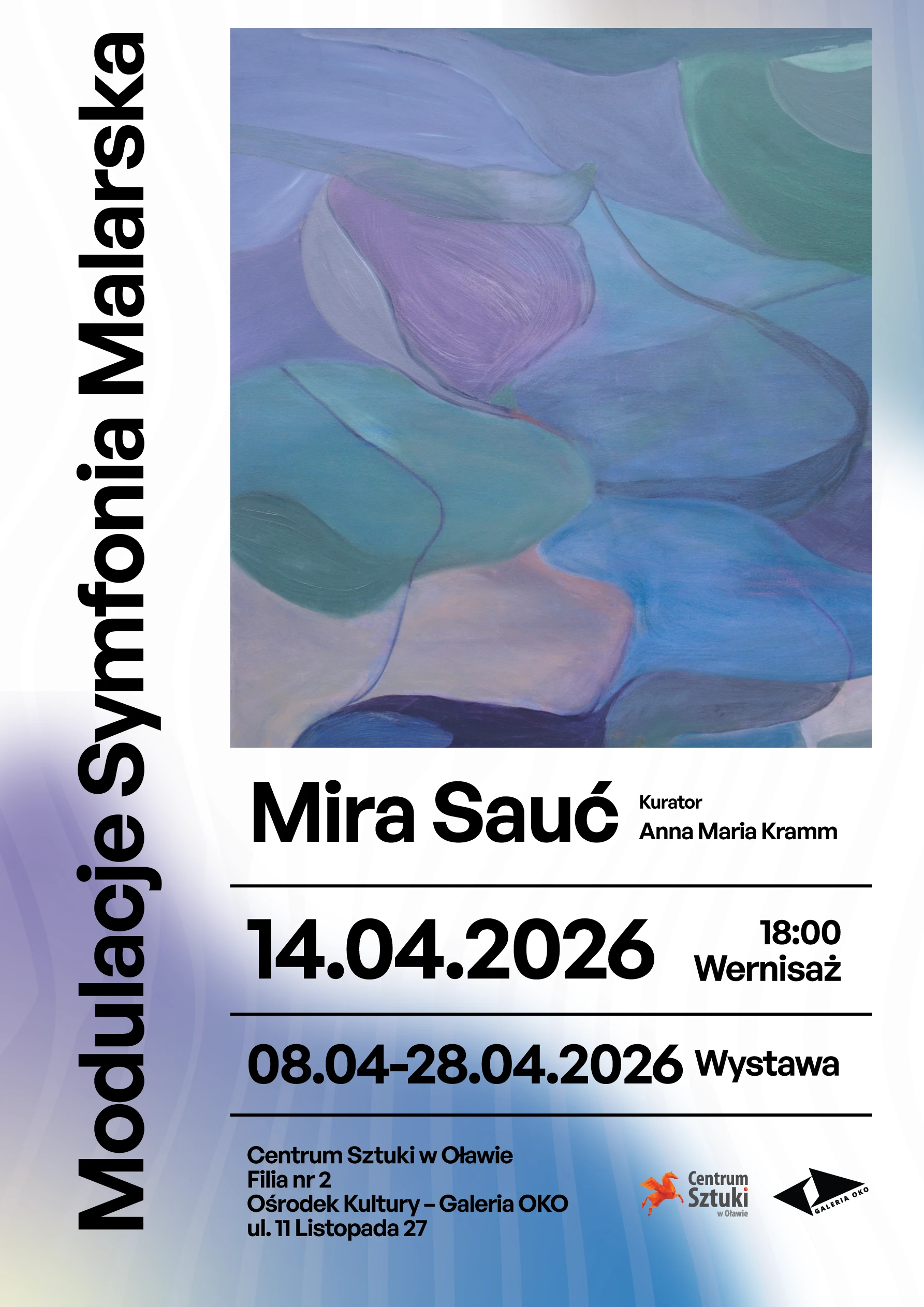 14 kwietnia o godzinie 18:00 w Galerii OKO (Ośrodek Kultury, ul. 11 Listopada 27) odbędzie się wernisaż wystawy malarstwa Miry Sauć pod tytułem "Modulacje, Symfonia Malarska", pod kuratelą Anny Marii Kramm Ekspozycja będzie dostępna dla zwiedzających w dniach 08-28 kwietnia.