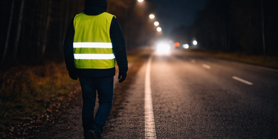 Policja przypomina: noszenie elementów odblaskowych poza obszarem zabudowanym po zmroku jest obowiązkowe. Odblaski sprawiają, że pieszy jest widoczny dla kierowcy nawet z kilkuset metrów, co daje realną szansę na bezpieczną reakcję.