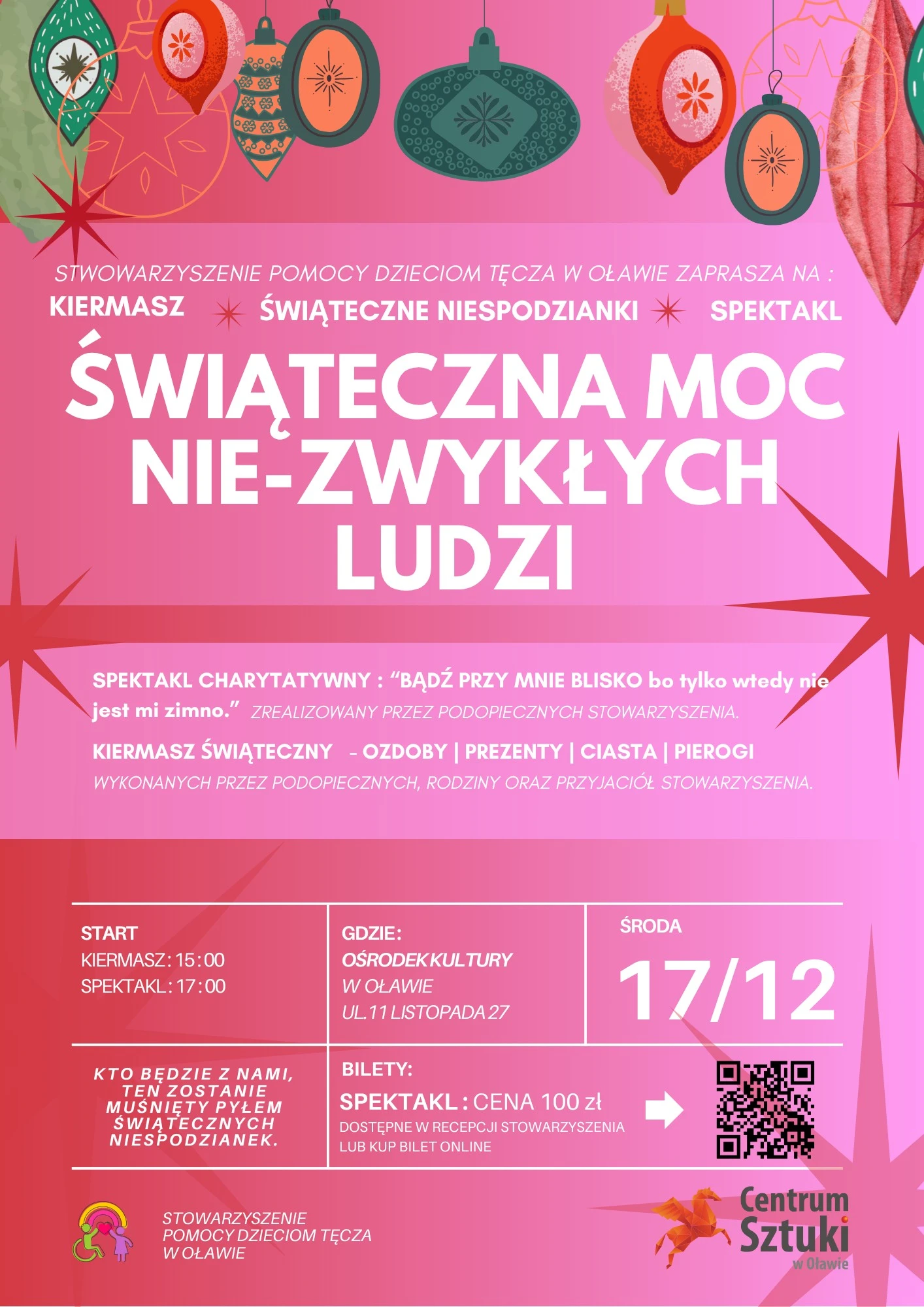 Stowarzyszenie Pomocy Dzieciom Tęcza zaprasza na kiermasz, który odbędzie się 17 grudnia od godziny 15:00 w Ośrodku Kultury w Oławie (ul. 11 listopada 27).