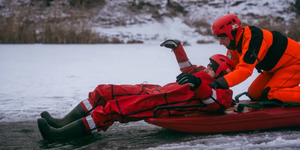 W przypadku zauważenia osoby, pod którą załamał się lód, najważniejsze jest natychmiastowe wezwanie pomocy pod numer 998 lub 112 oraz zadbanie o własne bezpieczeństwo. W miarę możliwości można podsunąć poszkodowanemu gałąź, szalik lub inny długi przedmiot, który pomoże mu wydostać się na powierzchnię.