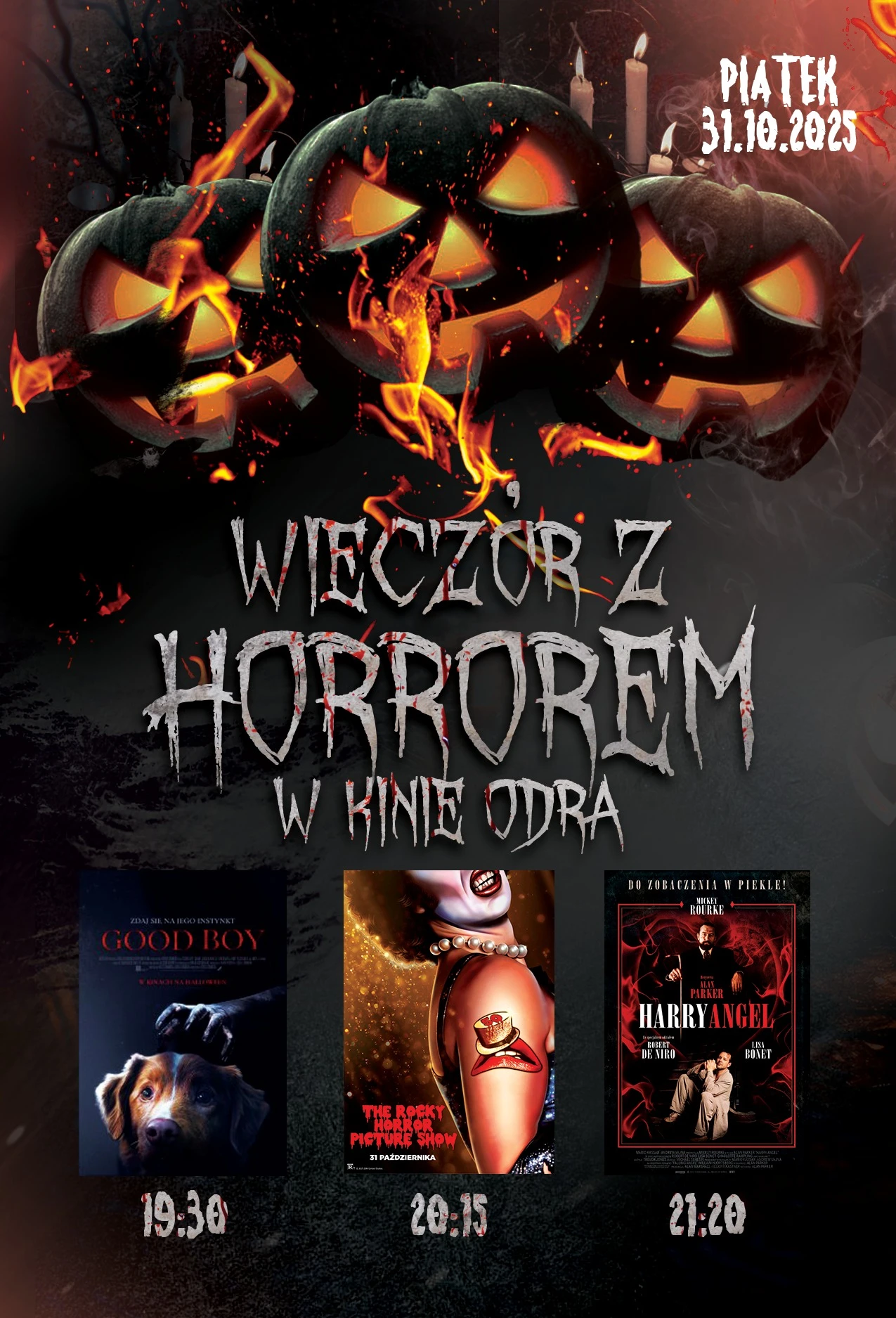 W najstraszniejszy wieczór roku Kino Odra zaprasza na trzy wyjątkowe horrory, które przyprawią o dreszcze i rozpalą wyobraźnię!