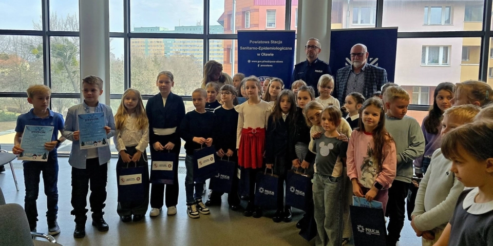 Oławska policja wraz z Powiatową Stacją Sanitarno-Epidemiologiczną w Oławie, zorganizowała konkurs plastyczny dla dzieci z powiatu oławskiego, który odbywał się pod hasłem: „Wiem, jak bezpiecznie bawić się na śniegu i uprawiać sporty zimowe”. - Celem konkursu była promocja bezpiecznych i zdrowych zachowań podczas zimowego wypoczynku, budowanie świadomości odpowiedzialności za własne zdrowie i bezpieczeństwo, a także zachęcanie dzieci do aktywności, kreatywności i rozwijania talentów plastycznych. Konkurs miał również pobudzić wyobraźnię najmłodszych i pokazać, że o bezpieczeństwie można mówić w ciekawy i twórczy sposób- informuje Wioletta Polerowicz, rzecznik prasowy oławskiej policji.