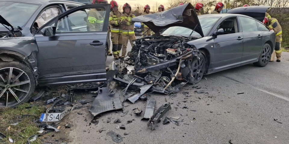 Na miejscu jest straż pożarna, policja i karetka pogotowia ratunkowego. Droga jest zablokowana.