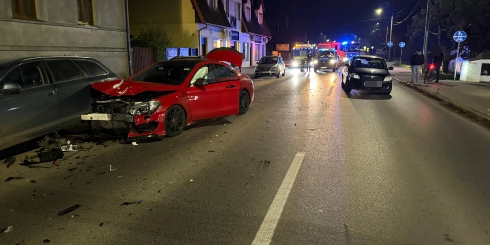 Policja wyjaśnia wszystkie okoliczności sytuacji, która miała miejsce chwilę przed północą. Ze wstępnych ustaleń wynika, że kierujący samochodem marki Skoda, 36-letni mężczyzna wyjeżdżając z parkingu tuż przy drodze głównej, nie upewnił się, czy może bezpiecznie włączyć się do ruchu. W tym momencie uderzył w niego kierowca Mercedesa. Następnie uszkodzone zostały jeszcze dwa inne zaparkowany samochody (Audi i Cupra).